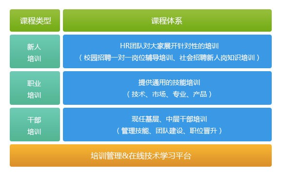 - 完善的入职培训。采取户外拓展训练、专家授课、资深员工工作指导等方式,内容涵盖职业素养、电信常识、产品知识、专业技术技能。