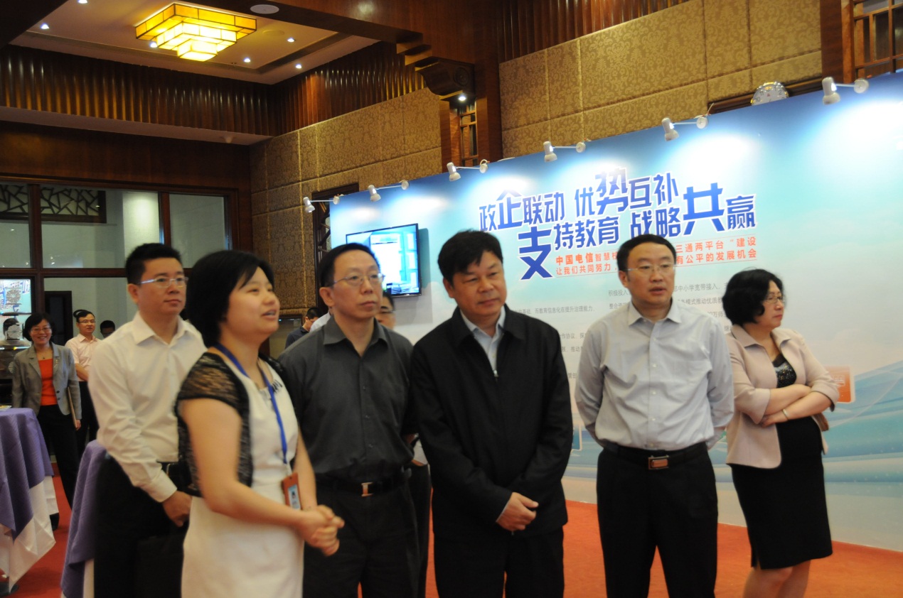 (图:教育部部长杜占元、科技司副司长雷朝滋以及中国电信集团副总经理孙康敏、政企部副总经理梁宏志对智慧课堂给予认可)