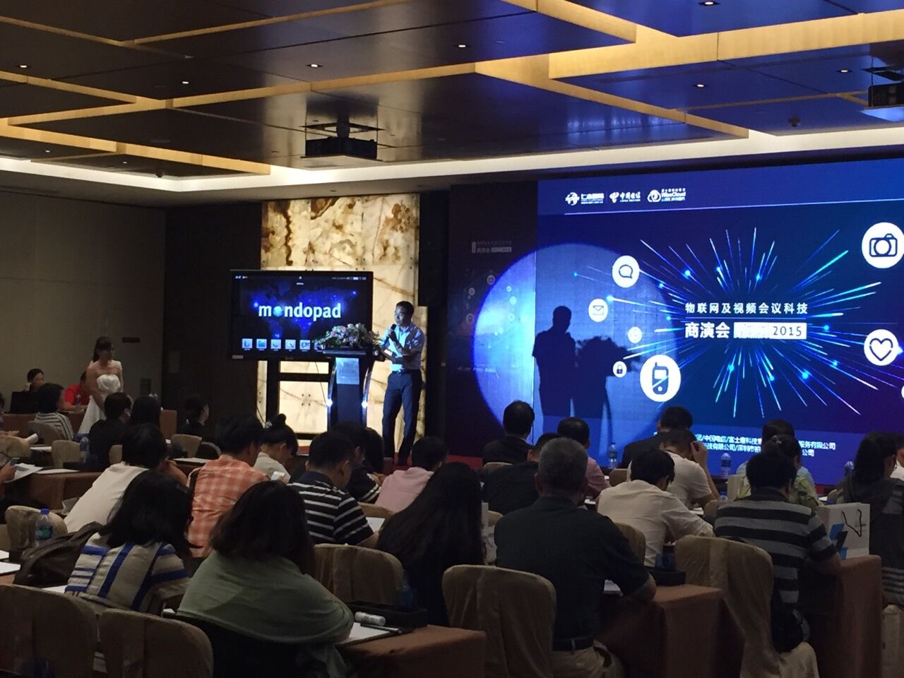 由中国电信广东亿迅联合仁志国际集团、富士康科技集团举办的2015物联网及视频会议科技商演会(广州站),于8月25日在广州顺利举行。本次商演邀集了业界诸多代表及厂商共同参与,中国电信广东亿迅视讯产品线视频会议专家刘莉博士和富士康集团云智汇公司、仁志国际集团发言人分别就视频会议最新发展技术及行业趋势、物联网产业发展现状等主题相继做了精彩发言。
