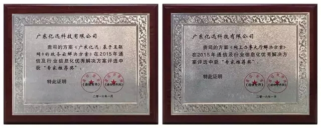 亿迅科技“互联网+政务”四个解决方案被评为2015年通信及行业信息化优秀解决方案