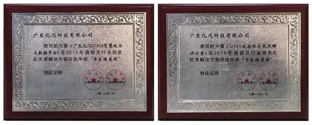 (“12345智慧政务大数据平台”与“12345政府服务热线解决方案”奖牌)