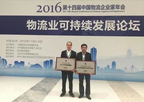(物流基地荣获“2016年中国物流创新奖”和“2016中国物流社会责任贡献奖”)