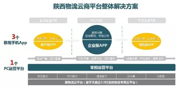 陕西物流云商平台以中国电信天翼云3.0作为底层承载,以中国电信现有的物流信息化产品和天翼云资源、光纤宽带、通信支付移动终端等资源作为基础,同时引入了行业合作伙伴的优势产品应用,形成业务生态化的物流专用云计算平台,构建起中国电信全新的物流+云生态服务系统。