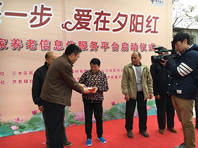 三水区民政局李倩萍副局长、芦苞镇尹卫文党委书记;中国电信三水分公司潘灿忠副总经理等相关领导、各街道民政基本部门相关领导等出席了现场,见证三水区居家养老信息化服务平台这个民生工程的启动仪式。