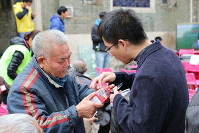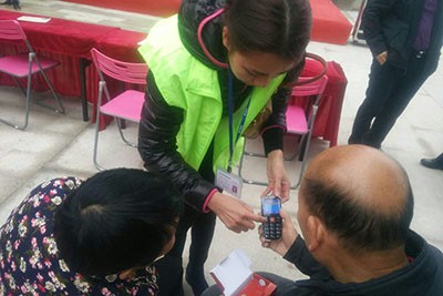 指导老年人们使用爱心手机